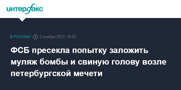 ФСБ пресекла попытку заложить муляж бомбы и свиную голову возле петербургской мечети