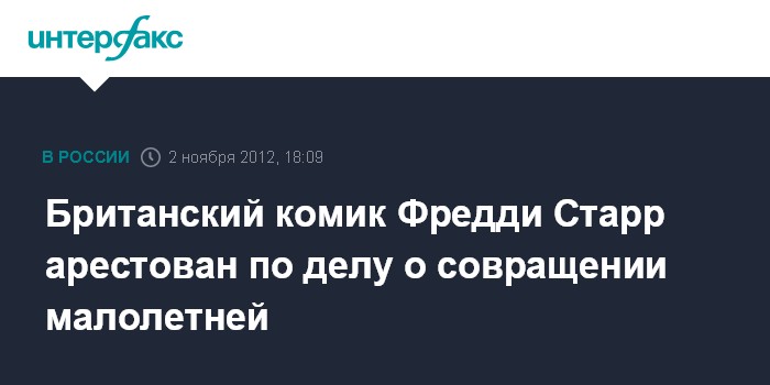 Лондон. 2 ноября. INTERFAX.RU - Британская полиция арестовала популярного комедийного актера Фредди Старра, который подозревается в сексуальных злоупотреблениях в отношении 14-летней девушки, сообщает в пятницу газета The Daily Telegraph.