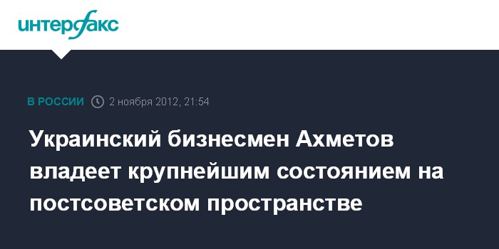 Украинский бизнесмен Ахметов владеет крупнейшим состоянием на постсоветском пространстве
