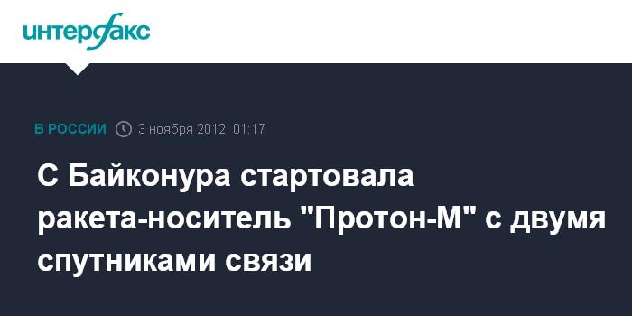 "Примерно через десять минут после старта разгонный блок с двумя космическими аппаратами должен отделиться от третьей ступени ракеты-носителя. Общее время выведения аппаратов связи - более 9 часов", - сказал "Интерфаксу-АВН" представитель Роскосмоса на космодроме.