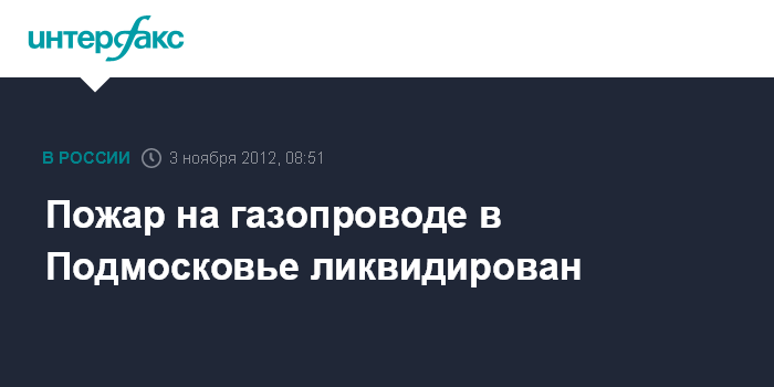 Москва. 3 ноября. ИНТЕРФАКС - Пожарные ликвидировали огонь на газопроводе в Щелковском районе Московской области, где в ночь на субботу произошел взрыв.