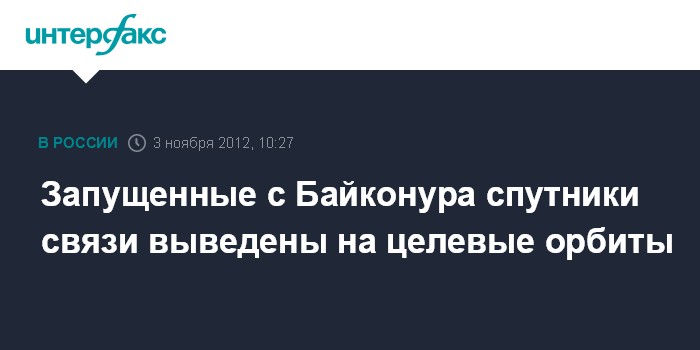 Байконур. 3 ноября. INTERFAX.RU - Ракета космического назначения "Протон-М" и разгонный блок "Бриз-М" вывели на расчетную орбиту спутники "Луч-5Б" и "Ямал-300К", сообщил "Интерфаксу-АВН" генеральный конструктор ОАО "Газпром космические системы" Николай Севастьянов. "Разгонный блок вывел аппараты "Луч-5Б" и "Ямал-300К" на орбиты, близкие к расчетным. В ближайшее время они будут переданы на управление заказчикам", - сказал собеседник агентства.
