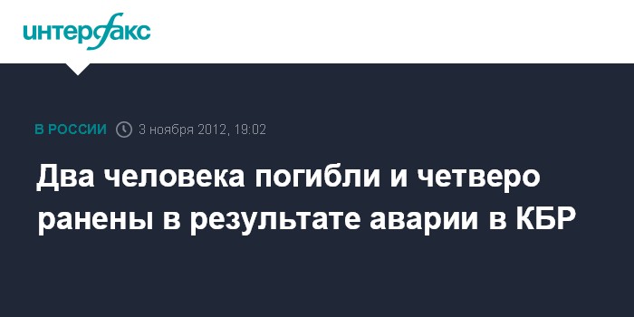 Нальчик. 3 ноября. INTERFAX.RU - В Терском районе КБР произошло ДТП, двое погибли, четверо ранены, сообщил в субботу агентству "Интерфакс-Юг" официальный представитель управления ГИБДД МВД по КБР.
