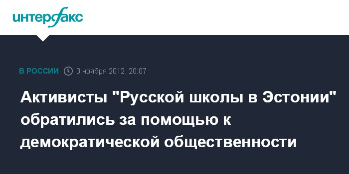Таллин. 3 ноября. INTERFAX.RU - Активисты некоммерческого объединения "Русская школа Эстонии" выступила в субботу с обращением к демократической общественности с просьбой поддержать сохранение в стране образования на русском языке.