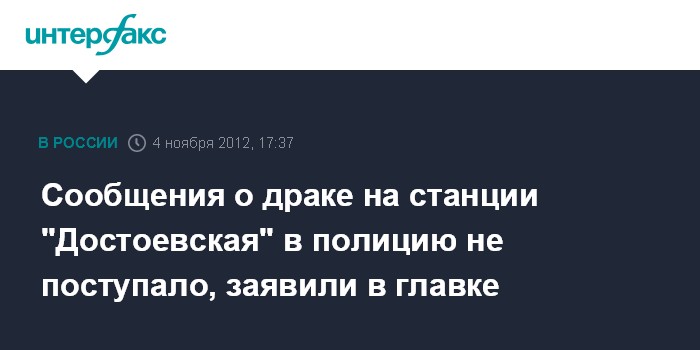 "Сообщение о массовой драке на станции "Достоевская" в ГУ МВД России по Москве не поступало. По сообщениям СМИ об этом факте в настоящее время проводится проверка", - сказал представитель главка.