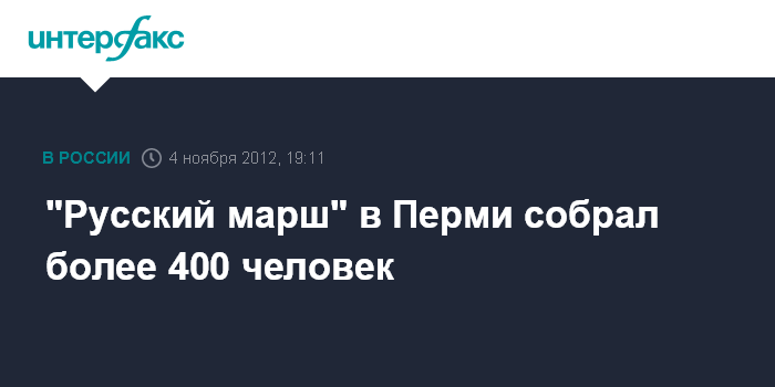 Пермь. 4 ноября. INTERFAX.RU - В Перми в "Русском марше", по данным полиции, приняло участие порядка 450 человек. Как сообщил агентству "Интерфакс-Поволжье" в воскресенье представитель ГУ МВД по Пермскому краю, мероприятие прошло без инцидентов.