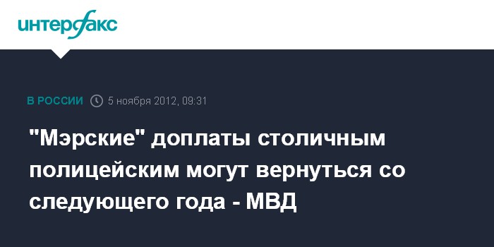 Он отметил, что если будет принято решение о том, что субъекты РФ имеют право на доплаты сотрудникам органов внутренних дел, то с нового года так называемые "мэрские" доплаты могут вернуться.