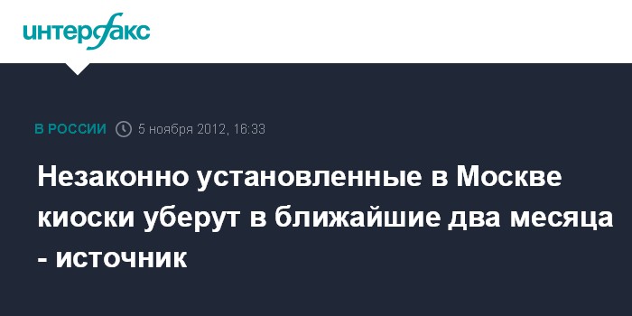 Незаконно установленные в Москве киоски уберут в ближайшие два месяца - источник