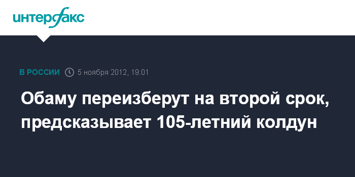 Каир. 5 ноября. INTERFAX.RU - Президент США Барак Обама, по прогнозу колдуна из родной деревни его отца в Кении, наверняка добьется переизбрания, сообщает в понедельник агентство Ассошиэйтед пресс.