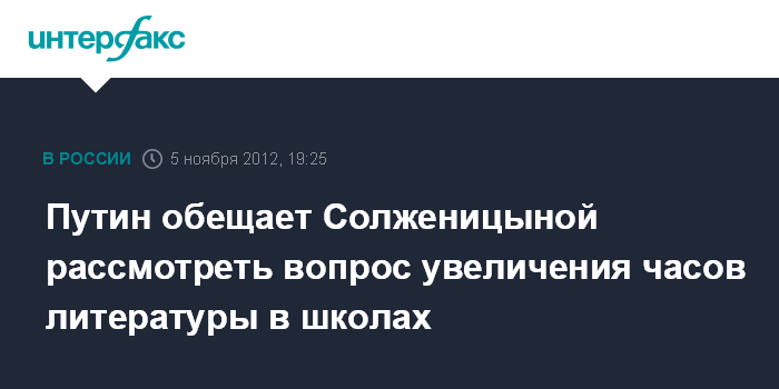 Путин обещает Солженицыной рассмотреть вопрос увеличения часов литературы в школах