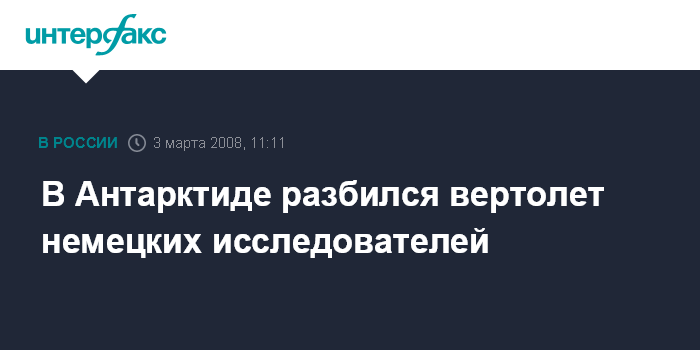 Берлин. 3 марта. INTERFAX.RU - Вертолет, принадлежавший немецким ученым, разбился в Антарктиде, объявили власти Германии.