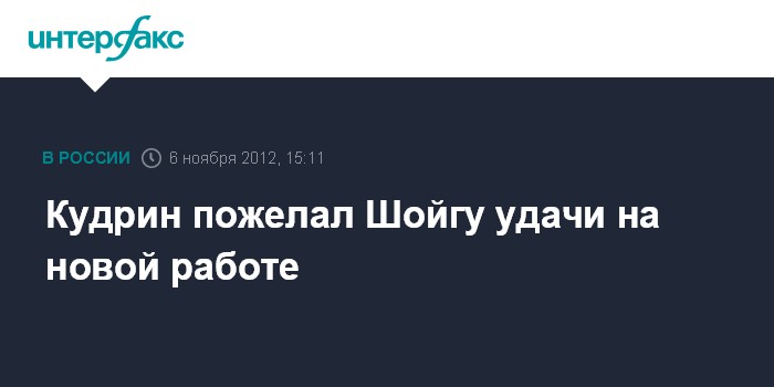 "Сергею Шойгу на посту министра обороны предстоит очень непростая работа. Удачи", - написал Кудрин в своем "Твиттере".
