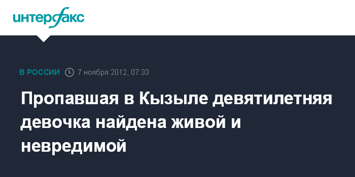 Пропавшая в Кызыле девятилетняя девочка найдена живой и невредимой