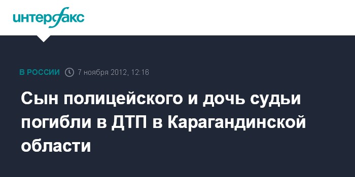Караганда. 7 ноября. INTERFAX.RU - В Карагандинской области Казахстана в результате ДТП погибли двое молодых людей.