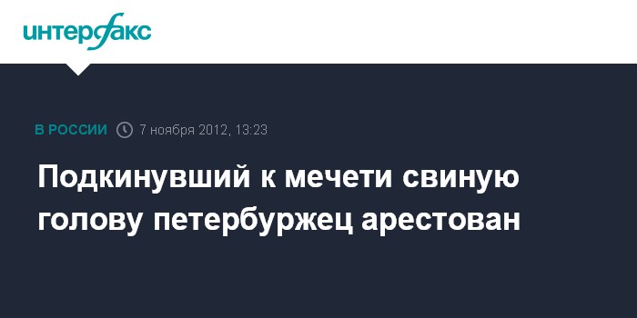 Как сообщалось, 2 ноября в северной столице задержан местный житель, который пытался закрепить на воротах соборной мечети муляж самодельного взрывного устройства и свиную голову.