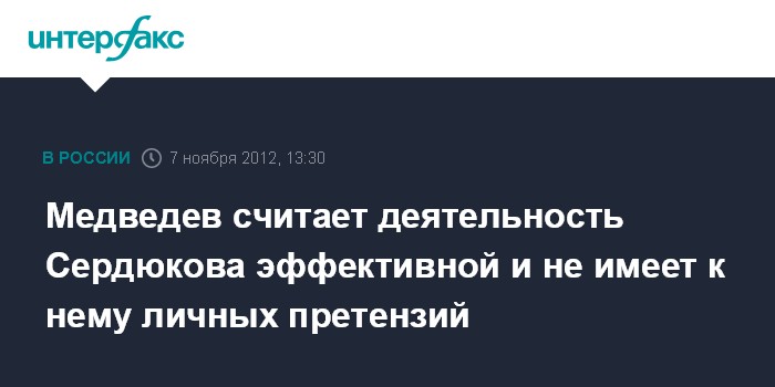 Медведев считает деятельность Сердюкова эффективной и не имеет к нему личных претензий