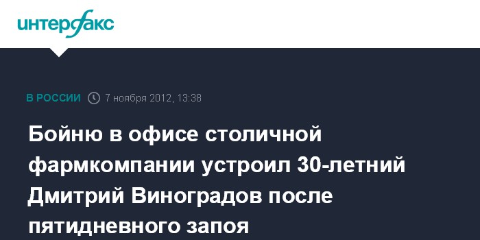 Бойню в офисе столичной фармкомпании устроил 30-летний Дмитрий Виноградов после пятидневного запоя