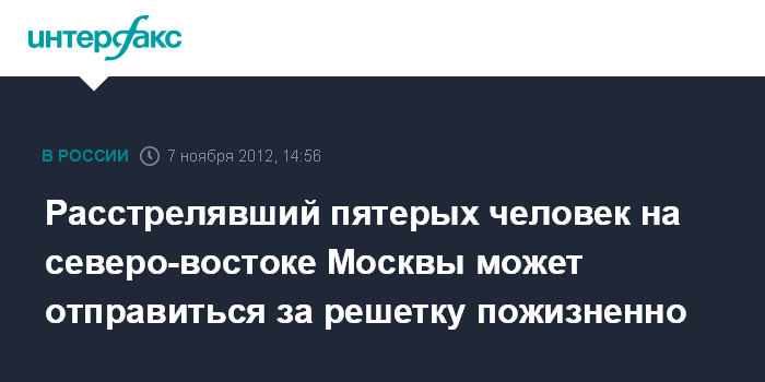 Расстрелявший пятерых человек на северо-востоке Москвы может отправиться за решетку пожизненно