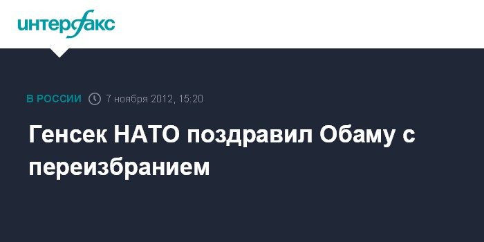 Брюссель. 7 ноября. INTERFAX.RU - Генеральный секретарь НАТО Андерс Фог Расмуссен передал горячие поздравления Бараку Обаме в связи с его переизбранием президентом США.