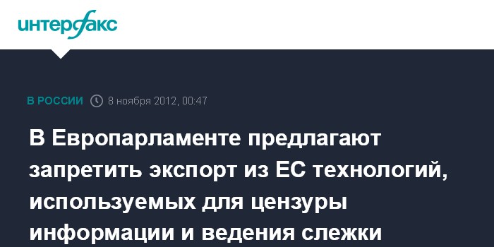 Брюссель. 8 ноября. ИНТЕРФАКС - Комитет Европарламента по иностранным делам предлагает запретить экспорт из ЕС информационных технологий, которые могут быть использованы репрессивными режимами для цензуры информации и внедрения систем слежки за лицами, пользующимися телефонной связи или интернетом.