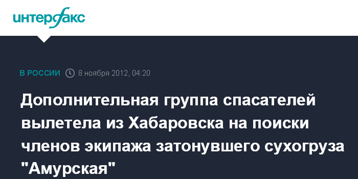 Хабаровск. 8 ноября. ИНТЕРФАКС-ДАЛЬНИЙ ВОСТОК - Два вертолета Ми-28 со спасателями и водолазами вылетели в четверг из Хабаровска в район крушения сухогруза "Амурская" в Охотском море, сообщили агентству "Интерфакс-Дальний Восток" в пресс-сл ГУ МЧС по Хабаровскому краю.