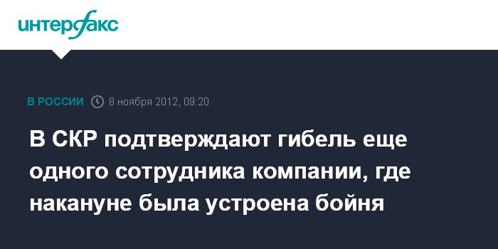 В СКР подтверждают гибель еще одного сотрудника компании, где накануне была устроена бойня
