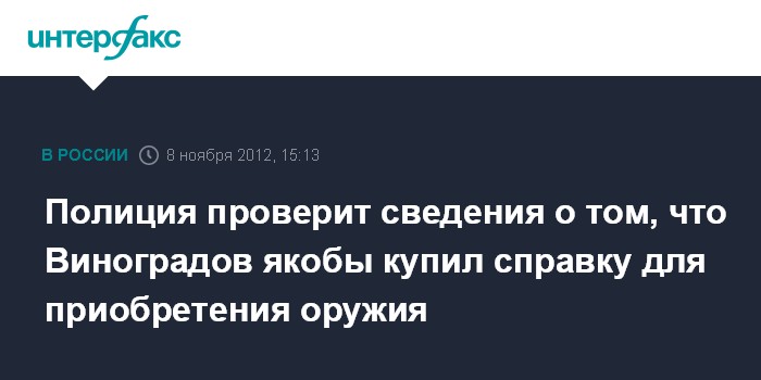 Полиция проверит сведения о том, что Виноградов якобы купил справку для приобретения оружия