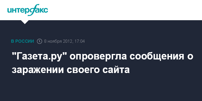 Москва. 8 ноября. INTERFAX.RU - Интернет-издание "Газета.ру" опровергло сообщения СМИ о том, что ее сайт заражен вредоносный кодом.