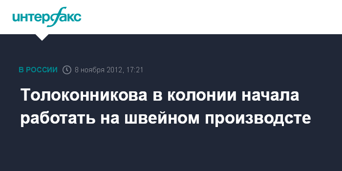 Москва. 8 ноября. INTERFAX.RU - Осужденная участница панк-группы Pussy Riot Надежда Толоконникова чувствует себя нормально, работает на швейном производстве в колонии.