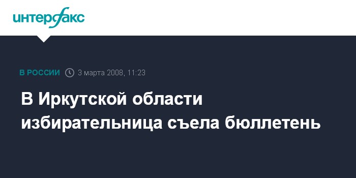 "Однако не обошлось без курьезного случая - в Шелехово одна женщина попыталась вынести бюллетень, а когда ей объяснили, что этого нельзя делать, она разорвала его и половинку проглотила", - сообщил на брифинге в понедельник председатель областной избирательной комиссии Виктор Игнатенко.