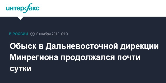 Обыск в Дальневосточной дирекции Минрегиона продолжался почти сутки