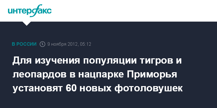 Владивосток. 9 ноября. ИНТЕРФАКС-ДАЛЬНИЙ ВОСТОК - На территории национального парка "Земля леопарда" установят 60 современных фотоловушек, по данным со снимков которых ученые будут изучать единственную сохранившуюся популяцию дальневосточного леопарда и юго-западную группировку амурского тигра в Приморье.