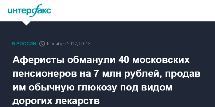 Аферисты обманули 40 московских пенсионеров на 7 млн рублей, продав им обычную глюкозу под видом дорогих лекарств