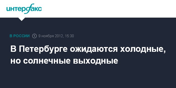 Санкт-Петербург. 9 ноября. INTERFAX.RU - Погоду в Петербурге и Ленинградской области в выходные будет определять поле повышенного давления, сообщили "Интерфаксу" в городском Гидрометцентре.