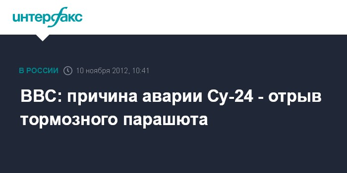 Москва. 10 ноября. INTERFAX.RU - Причиной летного происшествия с фронтовым бомбардировщиком Су-24М в Морозовске (Ростовская область) стал отрыв тормозного парашюта при посадке, сообщил "Интерфаксу-АВН" в субботу начальник Управления пресс-службы и информации Минобороны РФ, полковник Игорь Конашенков.