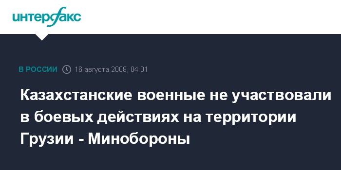 Астана. 16 августа. ИНТЕРФАКС-КАЗАХСТАН - Министерство обороны Казахстана опровергло сообщение ряда зарубежных СМИ о том, что казахстанские военные якобы принимали участие в боевых действиях на территории Грузии.