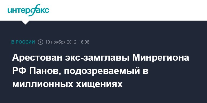 Арестован экс-замглавы Минрегиона РФ Панов, подозреваемый в миллионных хищениях