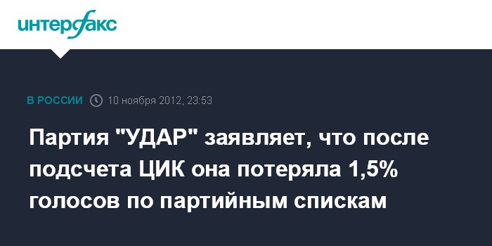 "Партия "УДАР" при таком "подсчете" потеряла почти полтора процента голосов. Не досчитались их и другие оппозиционные силы", - говорится в заявлении партии, распространенном в субботу вечером.