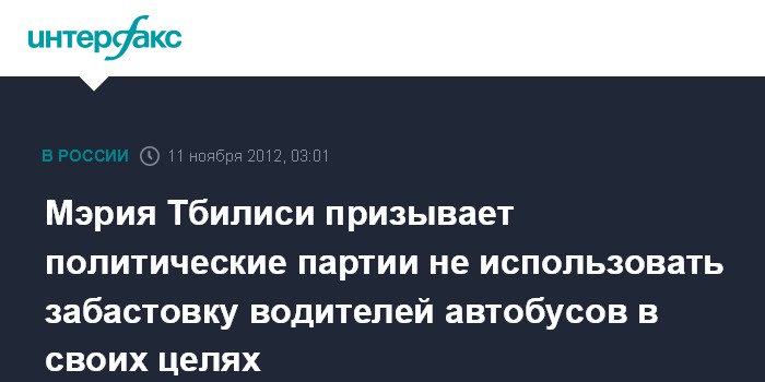 Тбилиси. 11 ноября. ИНТЕРФАКС - Мэрия Тбилиси в субботу вечером распространила заявление, в котором приносит извинения горожанам за возникшие у них проблемы с передвижением из-за забастовки водителей муниципальных автобусов и просит политические партии не использовать эту акцию в политических целях.