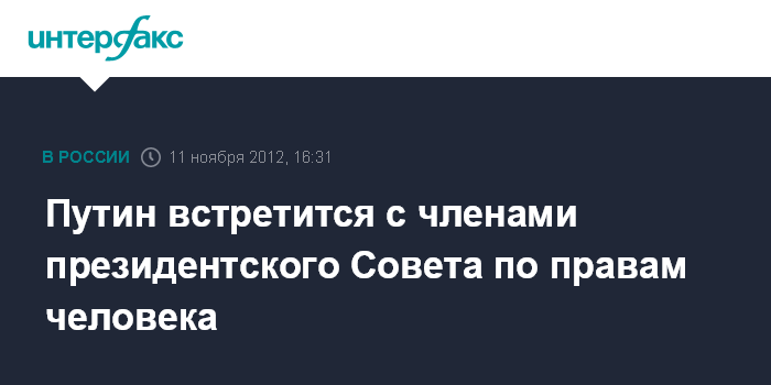 Москва. 11 ноября. INTERFAX.RU - Президент РФ Владимир Путин в понедельник, 12 ноября проведет заседание президентского Совета по развитию гражданского общества и правам человека, сообщает пресс-служба Кремля.