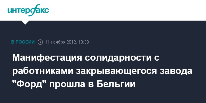 Брюссель. 11 ноября. INTERFAX.RU - Около 20 тыс. человек вышли на манифестацию в воскресенье в бельгийском городе Генк, чтобы выразить свою солидарность с работниками местного завода "Форд", который компания намерена закрыть и перенести производство в Испанию.