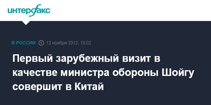 Первый зарубежный визит в качестве министра обороны Шойгу совершит в Китай