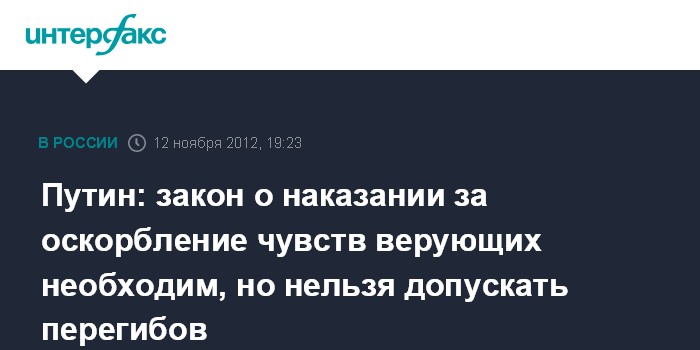 Путин: закон о наказании за оскорбление чувств верующих необходим, но нельзя допускать перегибов
