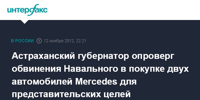 Астраханский губернатор опроверг обвинения Навального в покупке двух автомобилей Mercedes для представительских целей