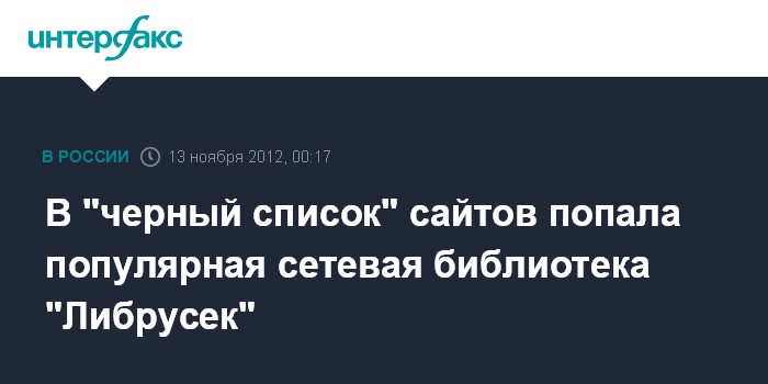 Москва. 12 ноября. INTERFAX.RU - Популярная сетевая библиотека "Либрусек", расположенная по адресу lib.rus.ec, оказалась недоступна для части пользователей в России из-за блокировки интернет-провайдерами.