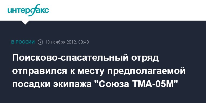 Новосибирск. 13 ноября. INTERFAX.RU - Поисково-спасательный отряд Центрального военного округа выдвинулся в район казахстанского города Аркалык для подготовки поиска и эвакуации экипажа спускаемого аппарата пилотируемого корабля "Союз ТМА-05М", приземление которого, как ожидается, произойдет через неделю.