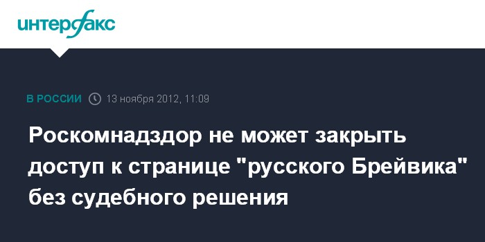 Роскомнадздор не может закрыть доступ к странице "русского Брейвика" без судебного решения