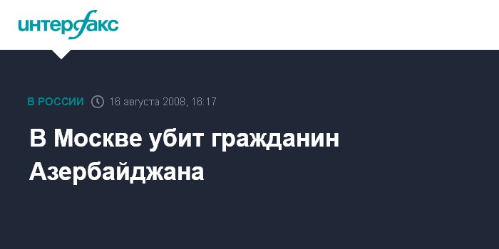 Москва. 16 августа. INTERFAX.RU - В Юго-Западном административном округе Москвы совершено убийство гражданина Азербайджана, сообщил "Интерфаксу" в субботу источник в правоохранительных органах.