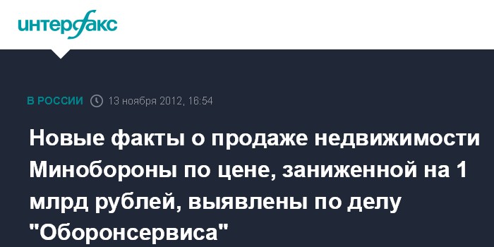 Новые факты о продаже недвижимости Минобороны по цене, заниженной на 1 млрд рублей, выявлены по делу "Оборонсервиса"