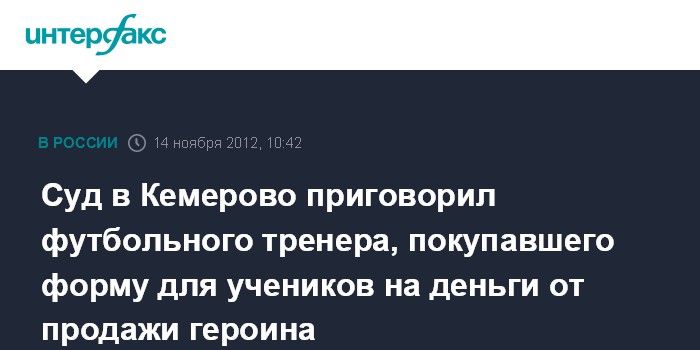 Суд в Кемерово приговорил футбольного тренера, покупавшего форму для учеников на деньги от продажи героина